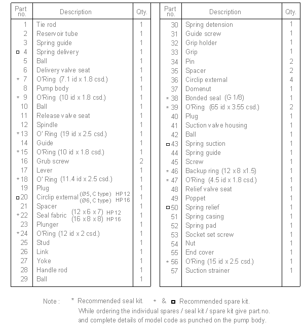 The Hand pumps do not need any major attention, however it is necessary to keep following